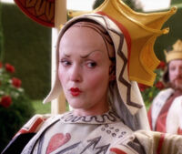 The Queen of Hearts appears as large woman, who is a pompous tyrant with a smaller crown. She is really very snide and mean. She wants everything her way and has quite a short temper. There are things shown in the 2010 film that hint to the fact that she is an amalgam of the Red Queen, and the Queen of Hearts herself.